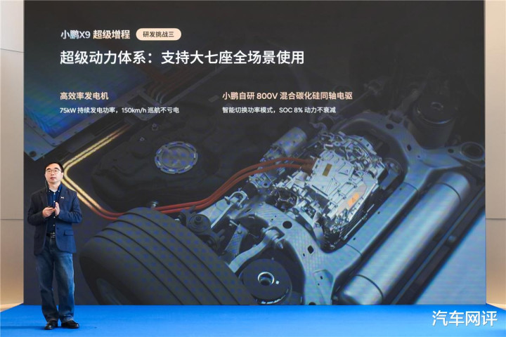 小鹏X9超级增程作为一款面向全球家庭的增程AI大七座车型,对其动力系统提出了极高要求:既要实现超长纯电续航和5C超快充兼容性,又要确保亏电状态下动力充沛、噪音控制达到纯电水准,同时还不侵占车内乘坐空间。这些指标共同指向了一个目标,就是打造“下一代增程”体验,即在保留电动车静谧、平顺优势的基础上,彻底消除续航焦虑。