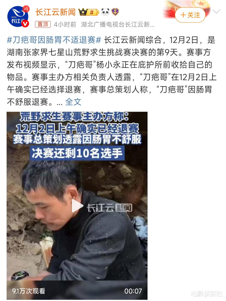 好不容易坚持到了决赛,很多观众都看好“刀疤哥”夺冠,没想到决赛进行到第9天,却传出了退赛的消息,这让很多支持他的粉丝倍感痛心。